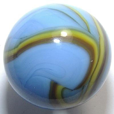 The Christensen Agate Company was only in existence for a couple of years and didn't produce that many marbles to begin with, and nearly all of them were 21/32" or less, right on down to and including peewees. They just didn't make very many shooters; that's what adds to the rarity of this beauty, at .765", it is considerably larger than 3/4", a size that is seldom seen with any style of CAC marble, much less a three color non-white FLAME; and, the real kicker is the wonderful high MINT condition. CONDITION: MINT(+) 9.8 The surface has the wet, shiny look of a brand new marble. I can only find a single tiny anomoly in the form of a tiny touch mark--visible just to the left of center in the fifth image. That's it. You may click here to view the grading system I use. Size 19.44mm or 0.765" at the equator. | |||||
