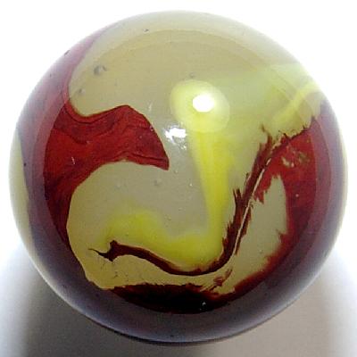 Even if this marble weren't so large, just a slight hair under 3/4", it would still hold a central place in any marble display--true eye-candy. CONDITION: MINT(+) 9.7 Wet shiny surface with the look of a brand new marble. All I can find to describe are some tiny melted dimples that are all clearly as-made to go along with a couple of tiny gaps in the oxblood. You may click here to view the grading system I use. Size 18.68mm or 0.735" at the equator. | |||||