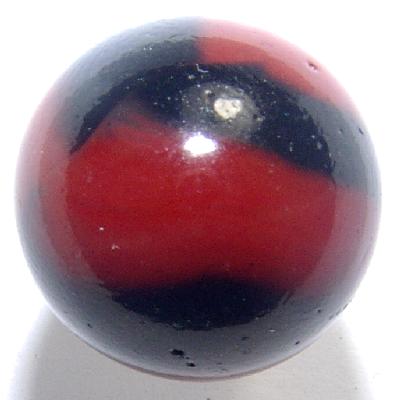 The base glass is the ultra-rare opaque dark red and has four black ribbons meeting at two rather uneven opposing seams. I have never been very good at capturing aventurine in my pictures but the ribbons have a liberal application of the fine aventurine particals that are rather singular to Peltier marbles. This variety of NLR dates back to some of Peltier's earliest examples, circa 1920s through the '40s.