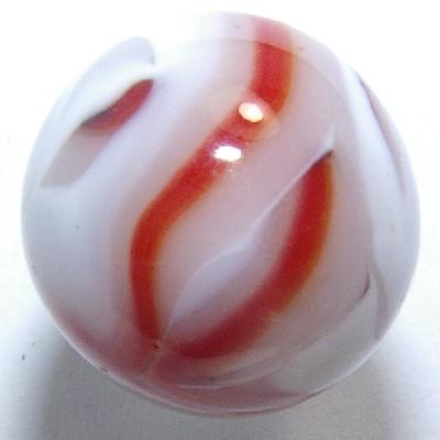 CONDITION: MINT 9.4 The surface is wet and shiny with absolutely no sign of wear at all. there is a crease, second and third pictures that looks almost like a dent, as well as some very tiny dimples and needle points, all clearly as-made. Also, there are tiny specks embedded in some of the needle points that look to have been there during production. And, the marble is not perfectly round, but then, few are. You may click here to view the grading system I use. Size 15.14mm or 0.596" at the equator. | |||||