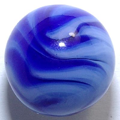 This is one of the sweetest Alley Agate swirls I've had in quite some time: Deep cobalt blue actively swirls with bluish-white to form a pattern that includes nearly all the types of FLAMES that Alley ever produced. Just follow the CAC type in the first picture, and then how the more flat ended type appears as the marble is slowly rotated under a bright light and lens. Magnificent!!