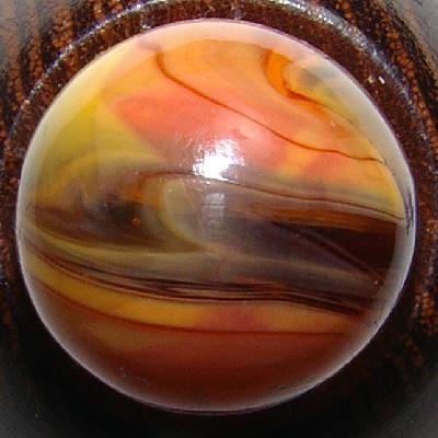CONDITION: MINT(+) 9.8 or better. I can find no flaws to describe on this PRISTINE, WET MINT surface. This marble should be of prime interest for anyone wanting to preserve a first class marble museum. You may click here to view the grading system I use. Size 15.75mm or 0.621" at the equator. | |||||