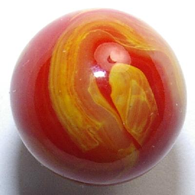 HOT WHEELS! What an appropriate name for this Champion Agate Company product. The yellow swirls on the bright red base glass does look like a red hot fire. I think this is one of the most recognizeable of the West Virginia swirls that are out there. I'm usually, at best, rather vague about most of my WV marble identifications, but certainly not with this one.