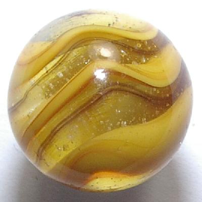 A yellow spiral corkscrew twists for nearly four full turns. Two translucent brown, carnelian corkscrews loosely follow, always on the surface, the large yellow spiral. Their behavior adds more character to the marble one would have thought possible. The yellow spiral has another attendant in the form of a semi-attached transparent orange corkscrew. The orange corkscrew sometimes appears attached, and others, not so much but never far removed. All of these features have combined to make one of the most intricate and attractive corkscrews I have in my possession. CONDITION: We have the glossy wet shine, but I can see a faint scuff mark located in the area the first image is showing. There is a tiny fingernail line at the other pole that doesn't show up as well as it should in the second picture. Even though the anomalies are faint and nearly microscopic, I'm afraid they occurred after leaving the factory. NEAR MINT(+) is the highest rating I can give. You may click here to view the grading system I use. Size 16.39mm or 0.646" at the equator. | |||||